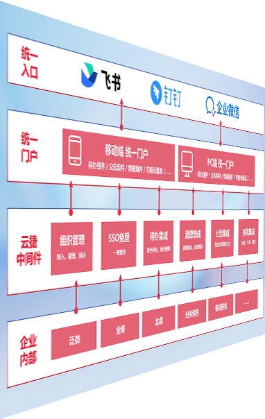 对协作平台提供支持服务,,支持企业应用与协作平台对接,,,包含组织同步、、、、消息集成、、、、待办集成等。。。支持目前主流的协作平台:钉钉、、、企微和飞书。。。。